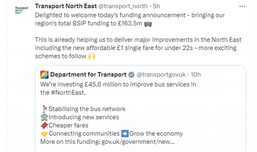 So the trumpet blowers at Transport North East are today celebrating a Department of Transport announcement, claiming to be investing £45.6 million into improving bus services. TNE claim this to be